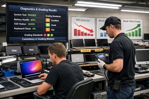 Two technicians, the same MacBook Pro, two different grades. One marks it Grade A and routes it to retail. The next morning, a senior tech catches a battery cycle count of 720, a sticky F4 key and a webcam that refuses to focus. It comes back as Grade C — too late to stop it shipping. Two weeks later it lands back on the dock as a return, and that single device has now cost you the resale margin, the inbound logistics, the regrade time and a customer review you cannot delete.